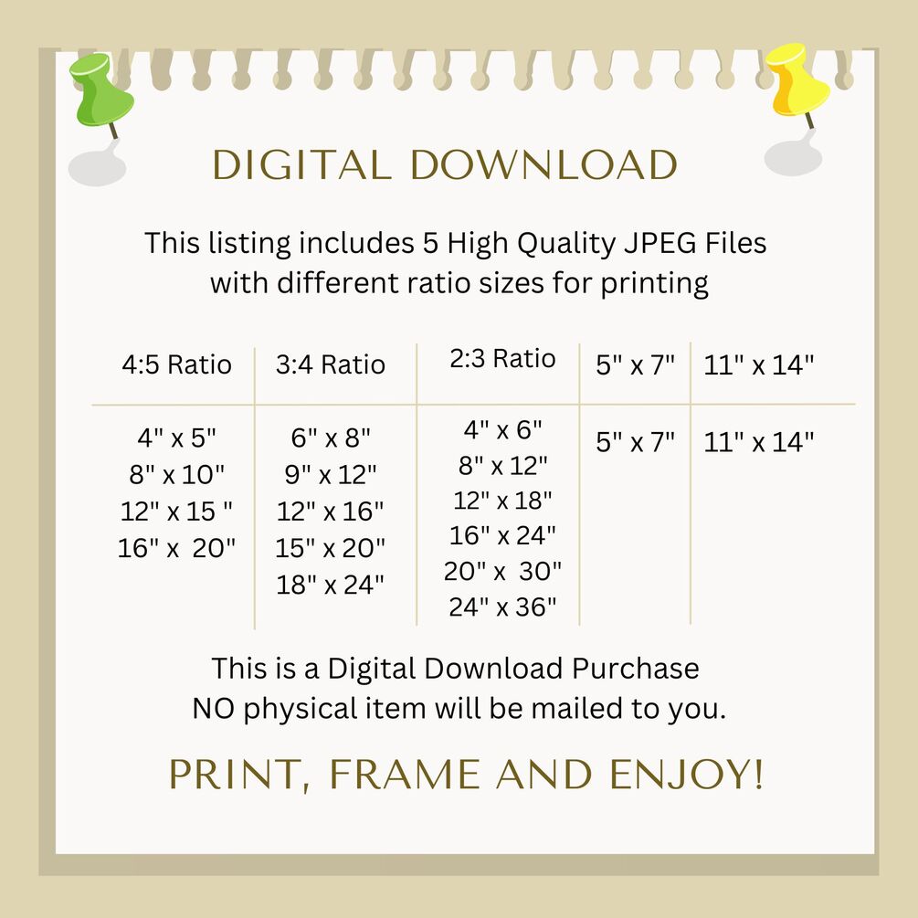 3:4 ratio file for printing sizes: 6”x8”, 9”x12”, 12”x16”, 15”x20”, 18”x24”